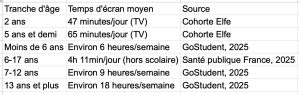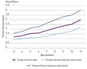 Temps moyen d’exposition aux écrans constatés par différentes études